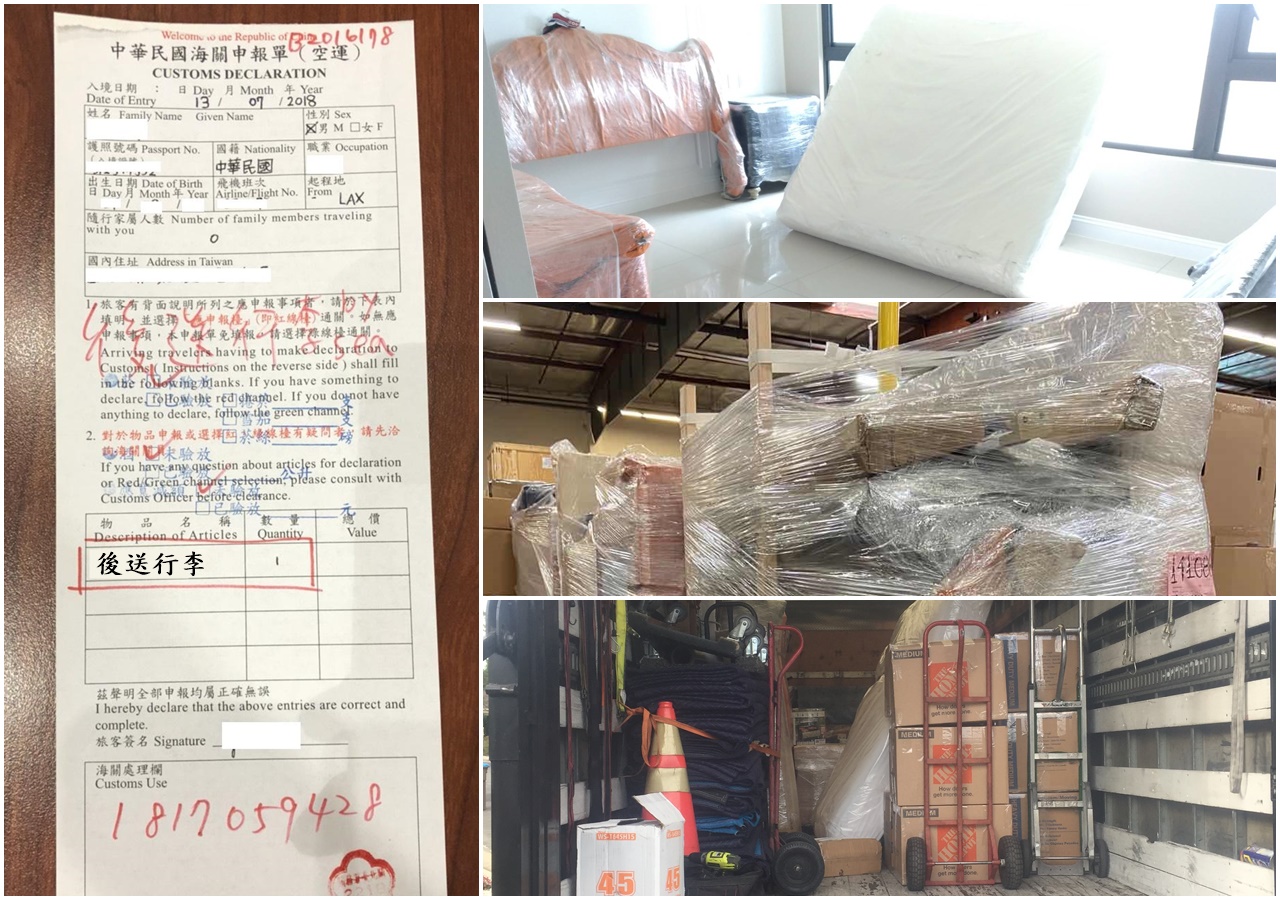 首先不論海運還是空運寄送私人行李到台灣,入境時要記得走紅線通關,不然就會變成一般商品進口要收關稅喔!