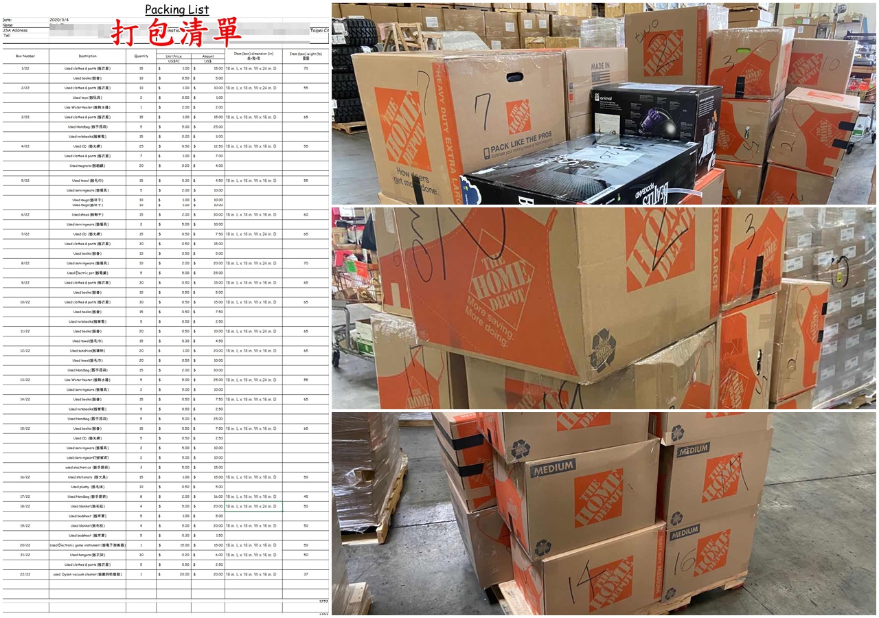 上圖為紐約留學生李小姐委託Ship2TW海運回台灣的14箱個人行李的packing list(行李裝箱明細)及裝箱打包的照片。行李清單Packing List是跨國搬家運送行李過程中最重要文件之一,如果是個人後送行李運送回台灣,建議行李上註記舊衣服舊玩具,避免台灣海關認為是新品要課徵進口關稅,另一個要注意事項是申報金額,國際搬家運送回台灣的行李享有免稅額2萬元關稅優惠(有條件限制),如果是舊品搬家運送回台,建議金額不要寫太高,除了汽車進口回台灣必須根據中古車行情訂價之外,個人舊衣物床墊電視沙發家具運送回台灣的報關申報金額不需要填寫太高,有任何國際搬家行李傢俱運送問題都可以諮詢Ship2TW公司。