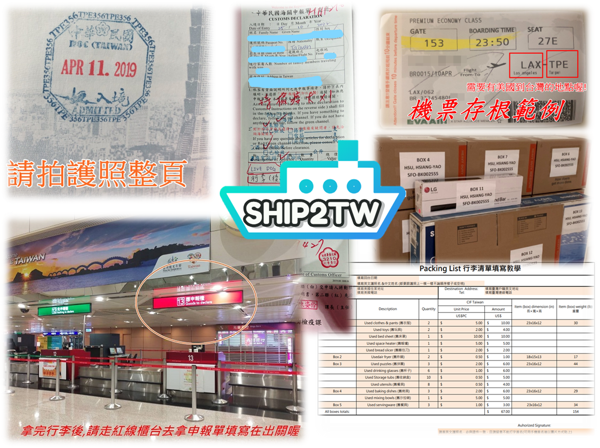 以客戶李小姐是紐約的一位留學生,她委託了 Ship2TW 把她的14箱個人行李海運回台灣。她提供了行李裝箱明細(packing list)以及裝箱照片,也註明了舊衣服和舊玩具等,為了避免台灣海關將其誤認為新品而課徵進口關稅,所以對於舊品,如舊衣物、床墊、電視、沙發和家具,報關申報金額不需要過高,通常可以寫新品的半價當參考,避免不必要的關稅負擔。點此看更多國際進出口文件準備怎麼填寫經驗分享