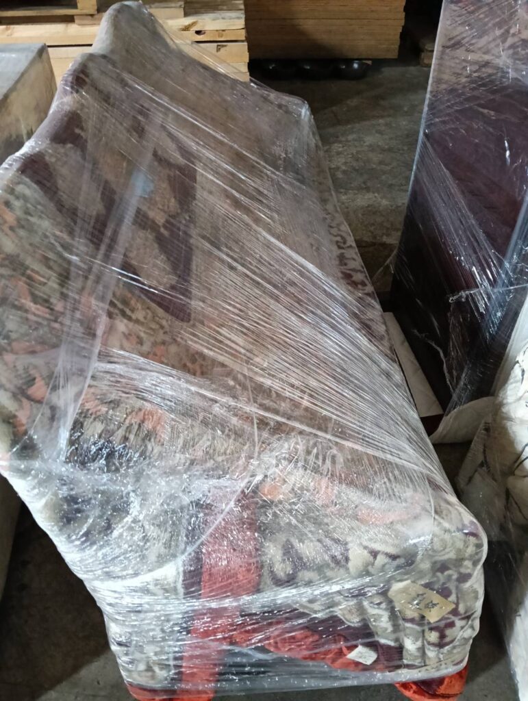 每件打包完成的家具都被牢牢固定在棧板上,並確保棧板可以直接裝入貨櫃,防止運輸過程中的晃動。