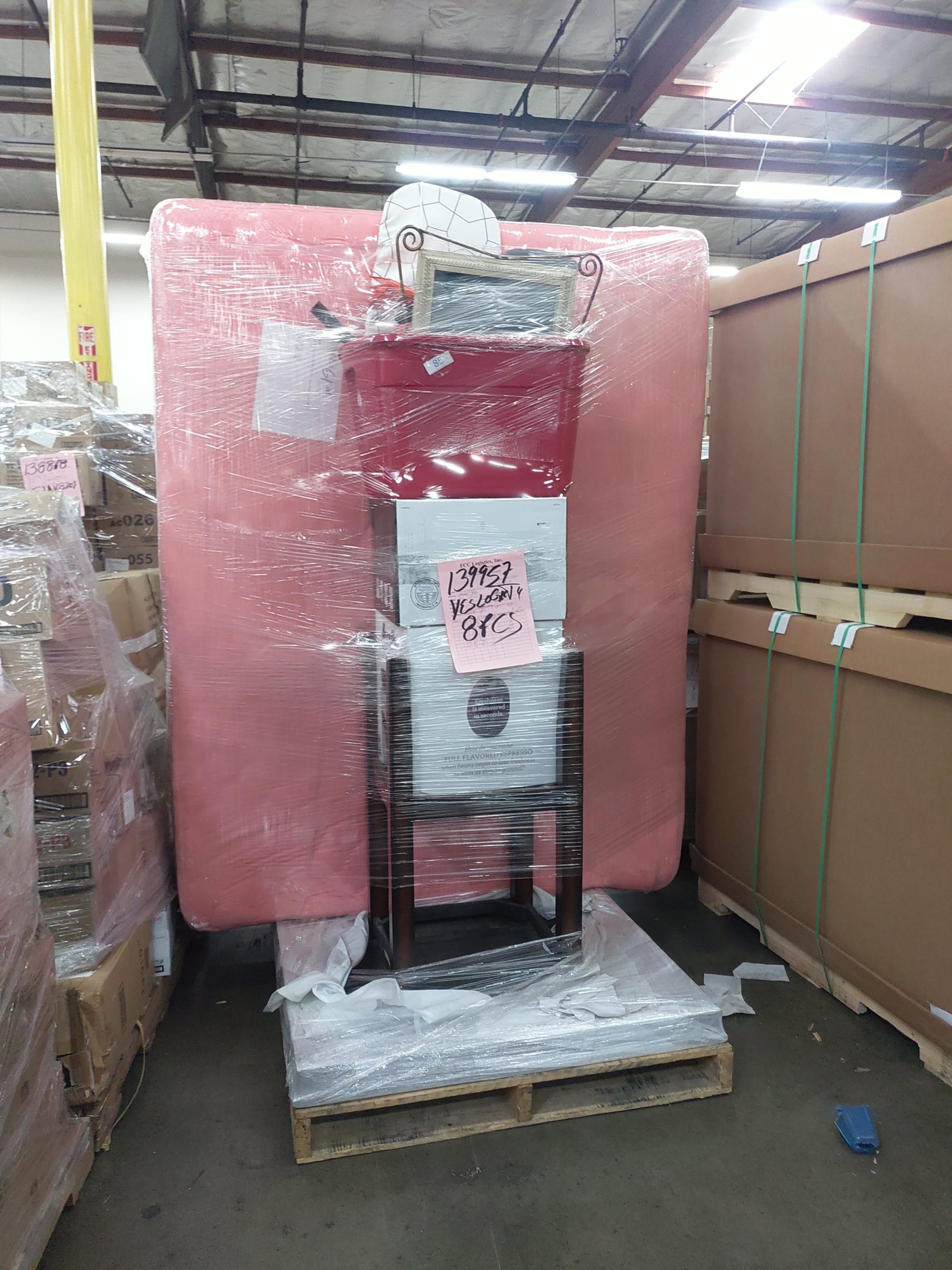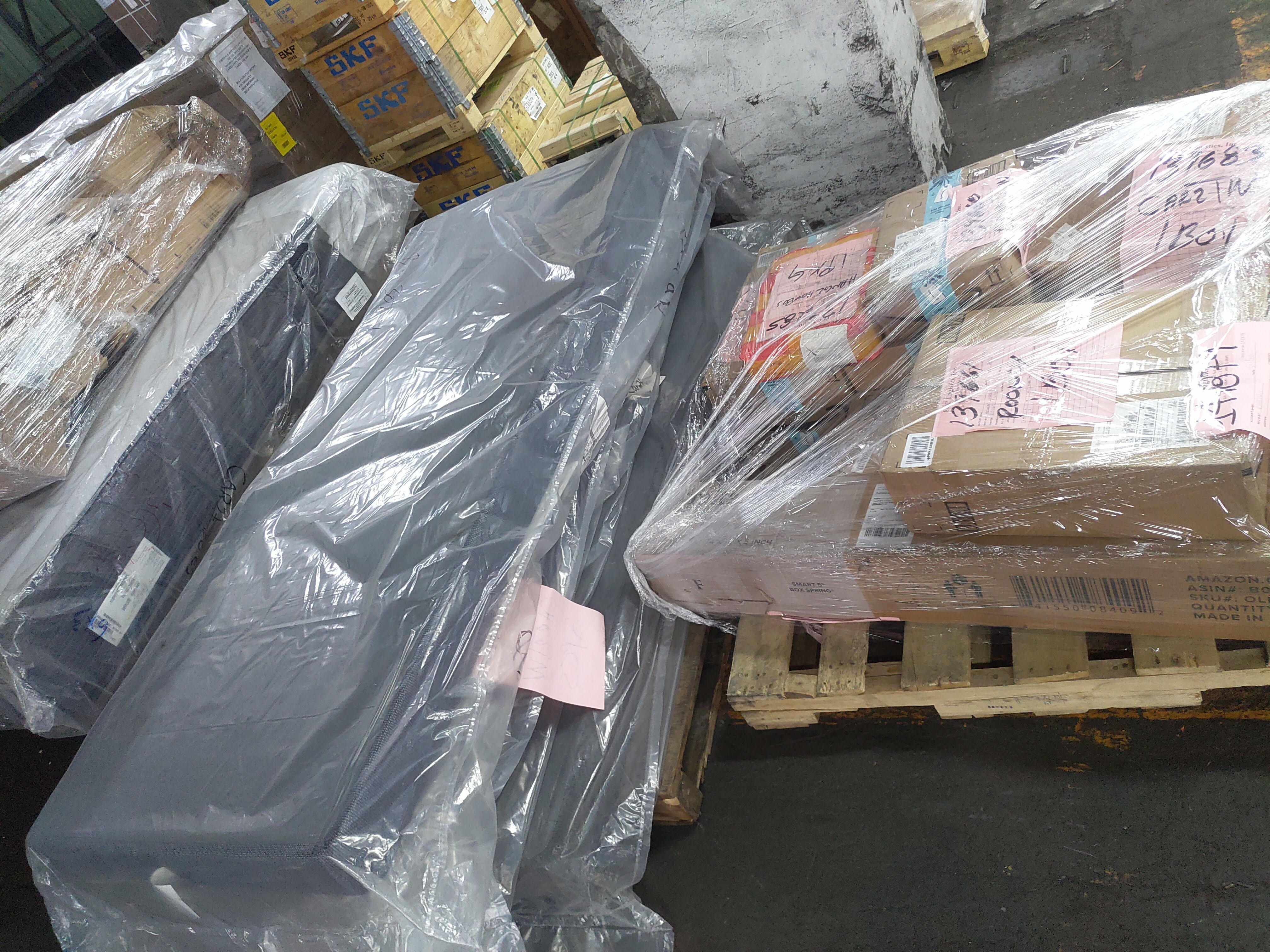 在您的私人物品運送到我們的倉庫後,我們的倉庫人員會把您的箱子放在棧板(Pallet) 上,並用膠膜(Stretch-wrapped Plastic Film) 包起來,固定並防止髒汙。